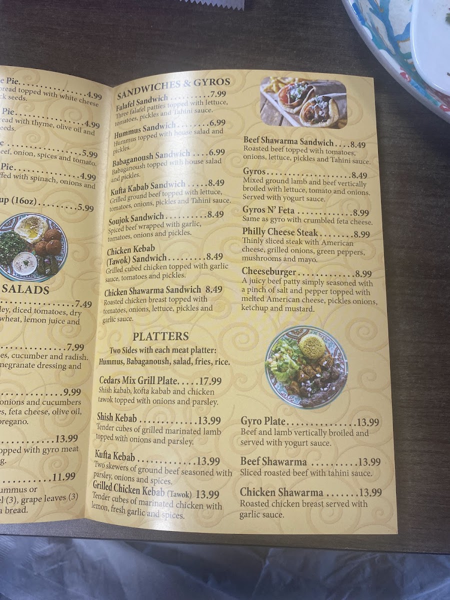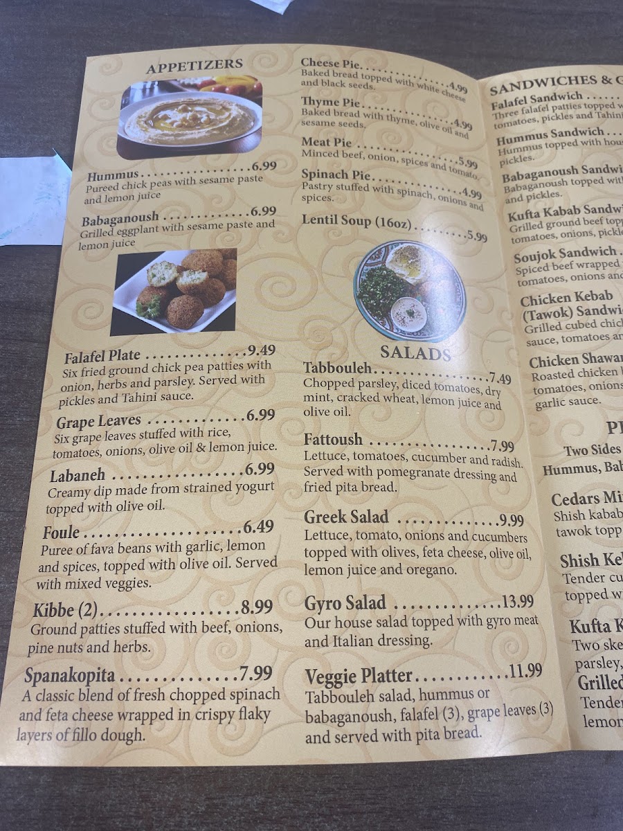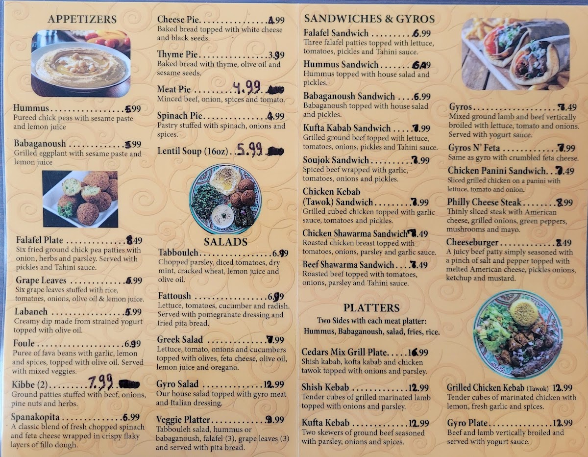 Introducing the Menu at Cedars Grill - St. Petersburg